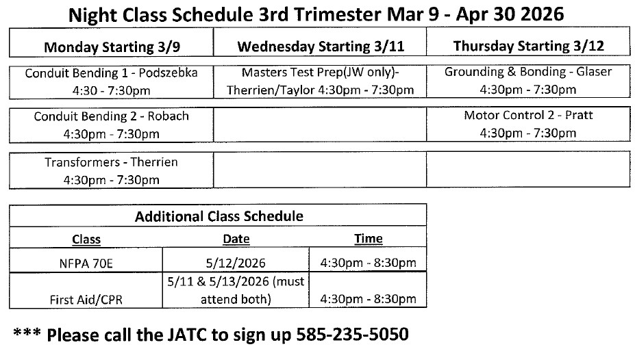 JATC Jan 5th-Feb 26th, 2026, Schedule